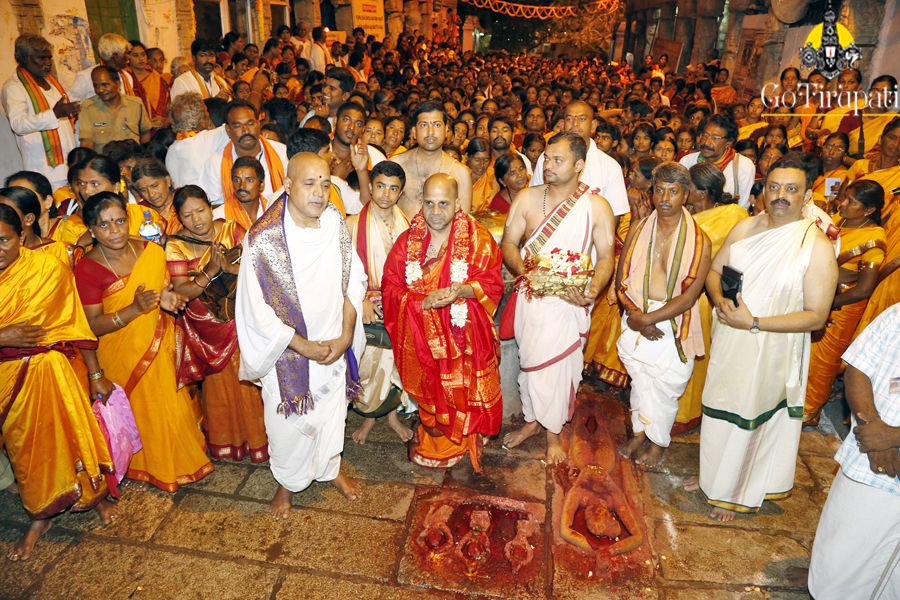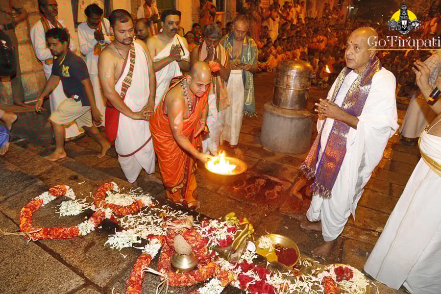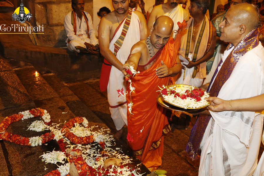 HH Sri sri sri Sugunendra Theertha swamy of puthige mutt Udupi, graced the holy occasion and performed puja to the steps near Alipiri Padalu. Speaking on this occasion he said, Dasa sahitya project has been doing a wonderful dharma Prachara activity through Traimasika metlotsavam in a big way for every three months in a year. He also complimented the Dasa troupes hailing from AP, TS, TN and Karnataka for following the path shown by grat Acharya Purushas of Hindu Sanatana Dharma.