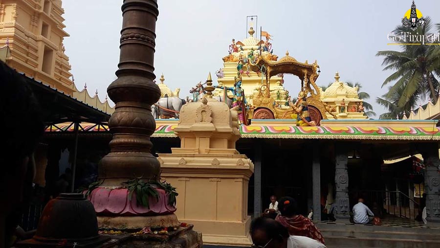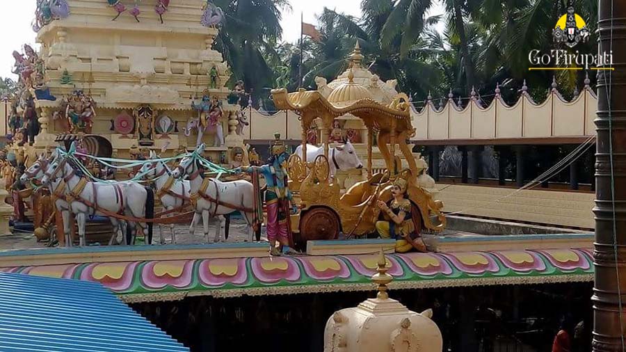 Vakulamatha wants to see Lord as a child, on request of his mother Lord self-manifested here. Here is the story, Molleti Rama Swamy a coconut vendor, son of Molleti Munaiah and Mangamma, is an ardent devotee of Lord Venkateswara. He used to visit Tirupati regularly, once Lord in the form of a child appeared in the dreams of the devotee and told him that he will manifest in his village. One day Rama Swamy noticed Lord Balaji Idol in the weighing pan, he named the Idol as Bala Balaji and installed the Idol.