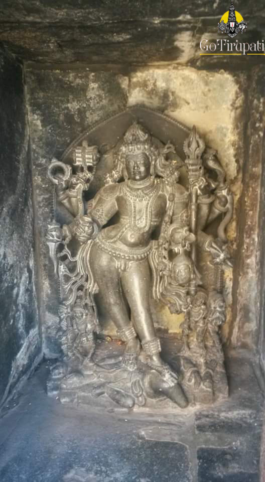 There is a shrine for Kappe Chennigarya within the temple complex which contains the image of Chennakesava. An interesting story associated with this Idol, the great sculptor Jakanacharya who left his native Tumkur well before his son was born. At the time of Idol installation, a young man from the group raised a voice against installation as there was a flaw in the Chennigarya Idol. Jakanacharya challenged the youth, that he will cut off his hand if it was proved. After the clear examination that sandal paste is still wet at the navel portion when they opened the wet portion, they found the frog. As promised Jakanacharya chopped his hand. Later he came to know that it is his none other than his son who challenged the installation. It is said that Jakanacharya that his hand was restored after building a temple at Kridapura.