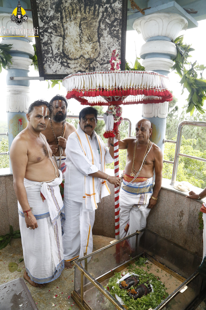 According to temple legend, Lord Venkateswara first landed onthis Narayanagiri mountain before entering into Srivari temple, which is considered to be the highest point ofSeven Hills of Tirumala. To mark this ceremonial occasion, Chatrasthapanotsavam has been performed where in a new traditional Umbrella was brought and special pujas were performed to Srivari Padalu.