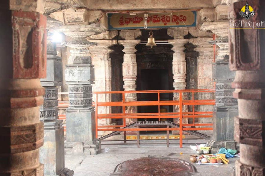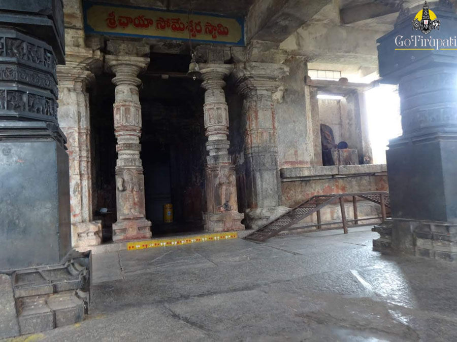 This temple was built during the 11th and 12th Century AD by Ikshvaku dynasty. This temple was later renovated by Kunduru Cholas in 12th Century A.D. Temple walls are carved with the Epics from Mahabharata and Ramayana. Chaya Someswara Swamy Temple also called by Thrikutalayam which means three Garbha Grihas.