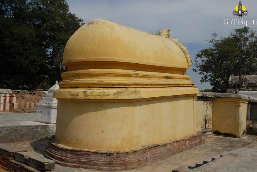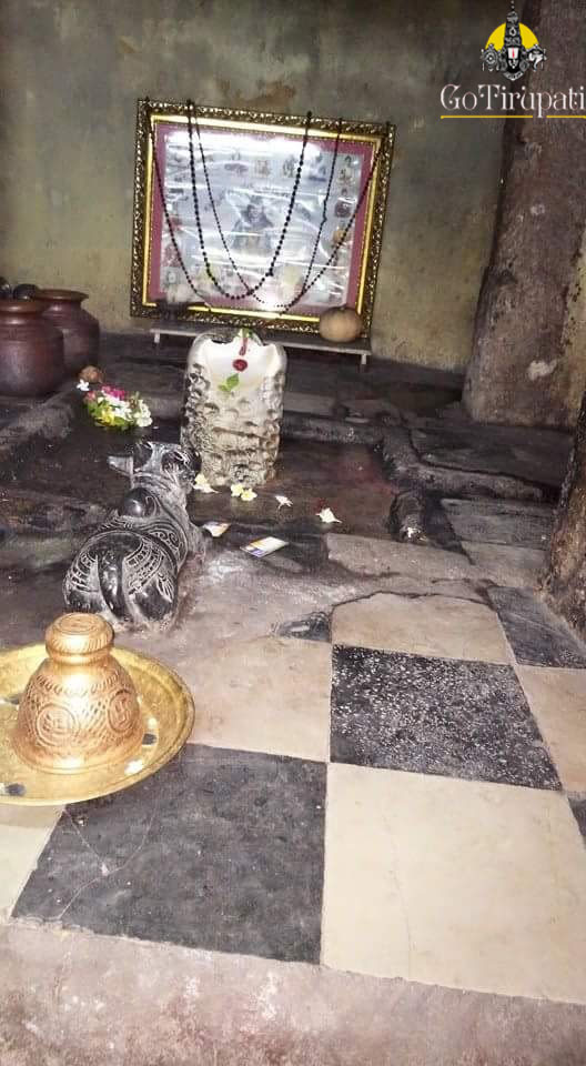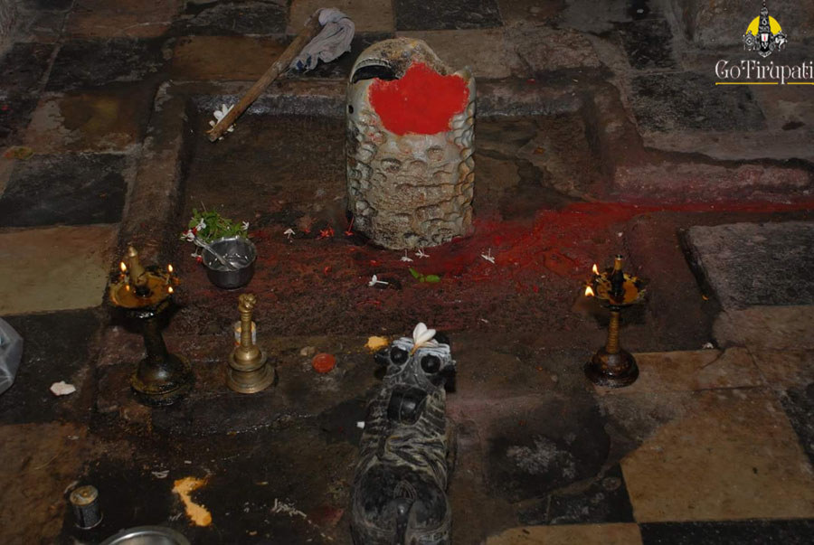 Lord here in this temple can be seen in Lingakara. The deity Kapotheswara, who gave a portion of his own body in order to save a pigeon which took refuge with him. Even today, one can see the large cavities on the Idol, as if portions have been scooped or cut out. It is said that the cavities on the Idol were formed when the Lord cut off his own flesh while trying to save the life of a Pigeon (Kapota). The Idol can be seen here with the head cut off and on top of the Linga, there are two large cavities. The cavities in the Idol absorbs the Abhisheka Tirtha and no one known to where this Tirtha is flowing. One can feel the smell of raw flesh and can see the blood flow out of this Idol.
