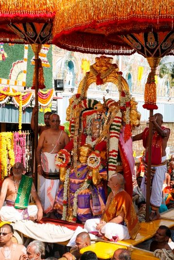 On the morning of the sixth day, the image of God is taken in a procession around the town of Tirumala in a vehicle of Hanuman or the Hanumantha Vahanam. As in Ramayana, Lord Rama is assisted in his epic journey by Hanuman. Lord Rama is seen as the avatar of Lord Vishnu. The presiding deity Lord Venkateswara gives darshan to his devout followers on the Hanumantha Vahanam.