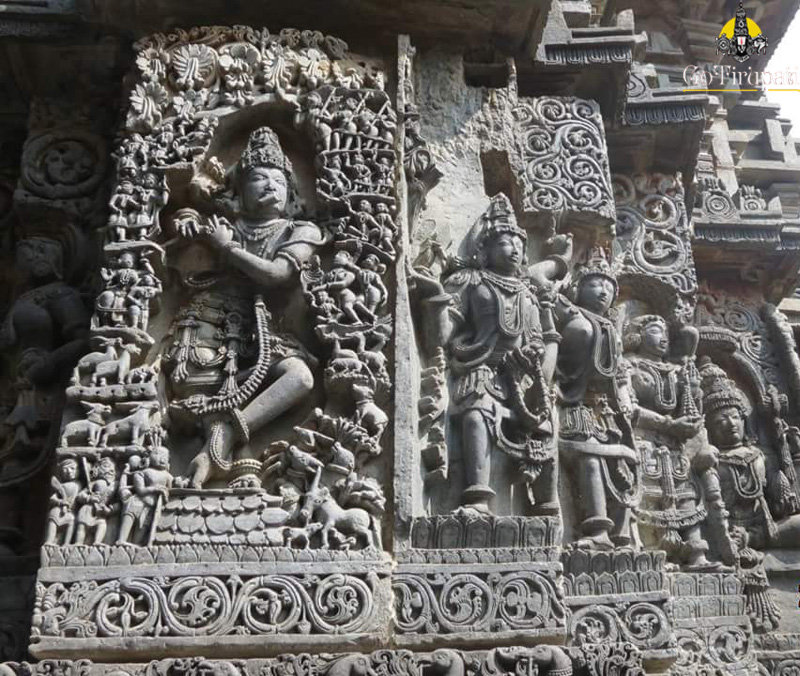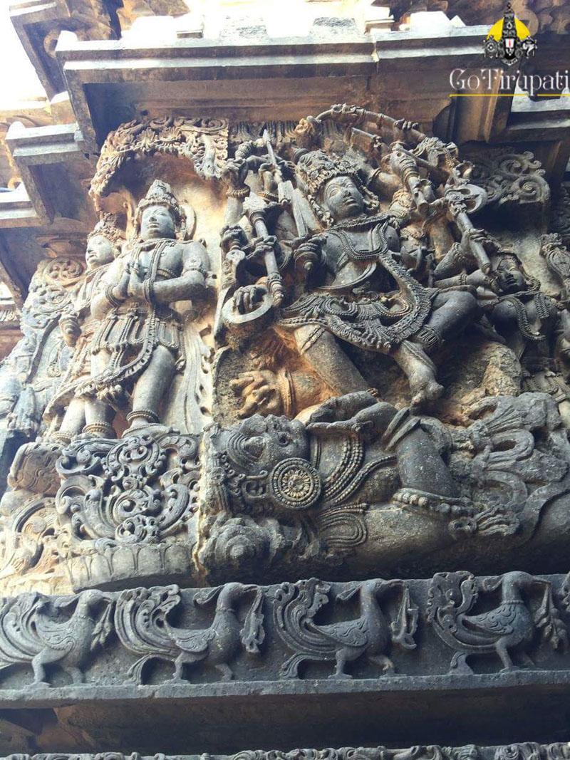 Hoysaleswara Temple Halebidu is dedicated to Lord Siva. Halebidu means ruined city. Halebidu was originally known as Dwarasamudra as it had a huge lake. Incarnations of Lord Vishnu were sculptured on the temple walls. Temple’s walls are replete with the most richly sculpted friezes. There are scenes from the epics, The Mahabharata, Ramayana and the Bhagavata.