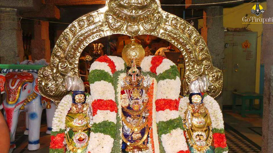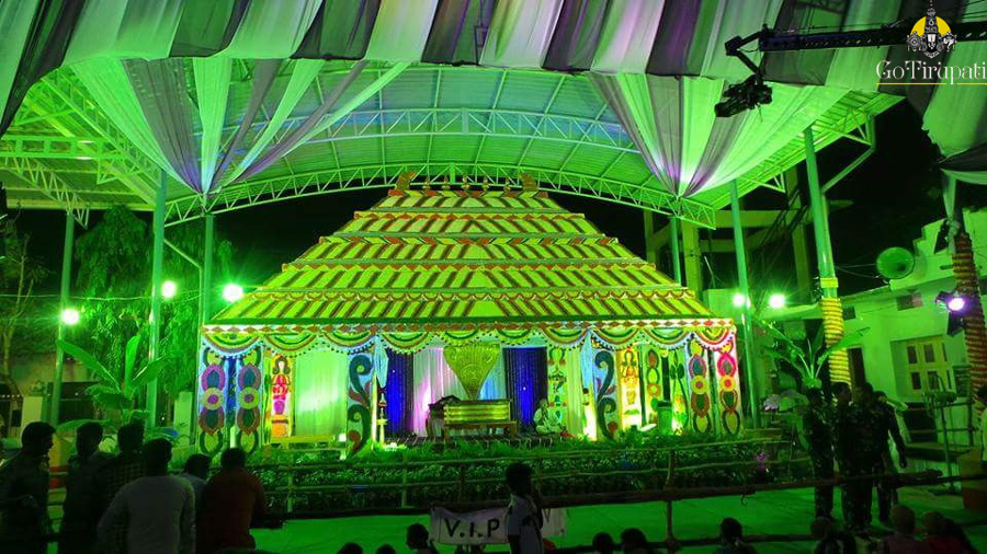 The divine marriage to the Utsava deities of Lord Narasimha Swamy and His two consorts. Sridevi and Bhudevi have been performed with religious ecstasy. The entire temple premises has been finely decorated with beautiful flowers to match the occasion.