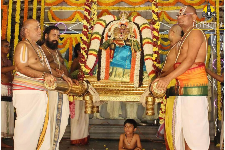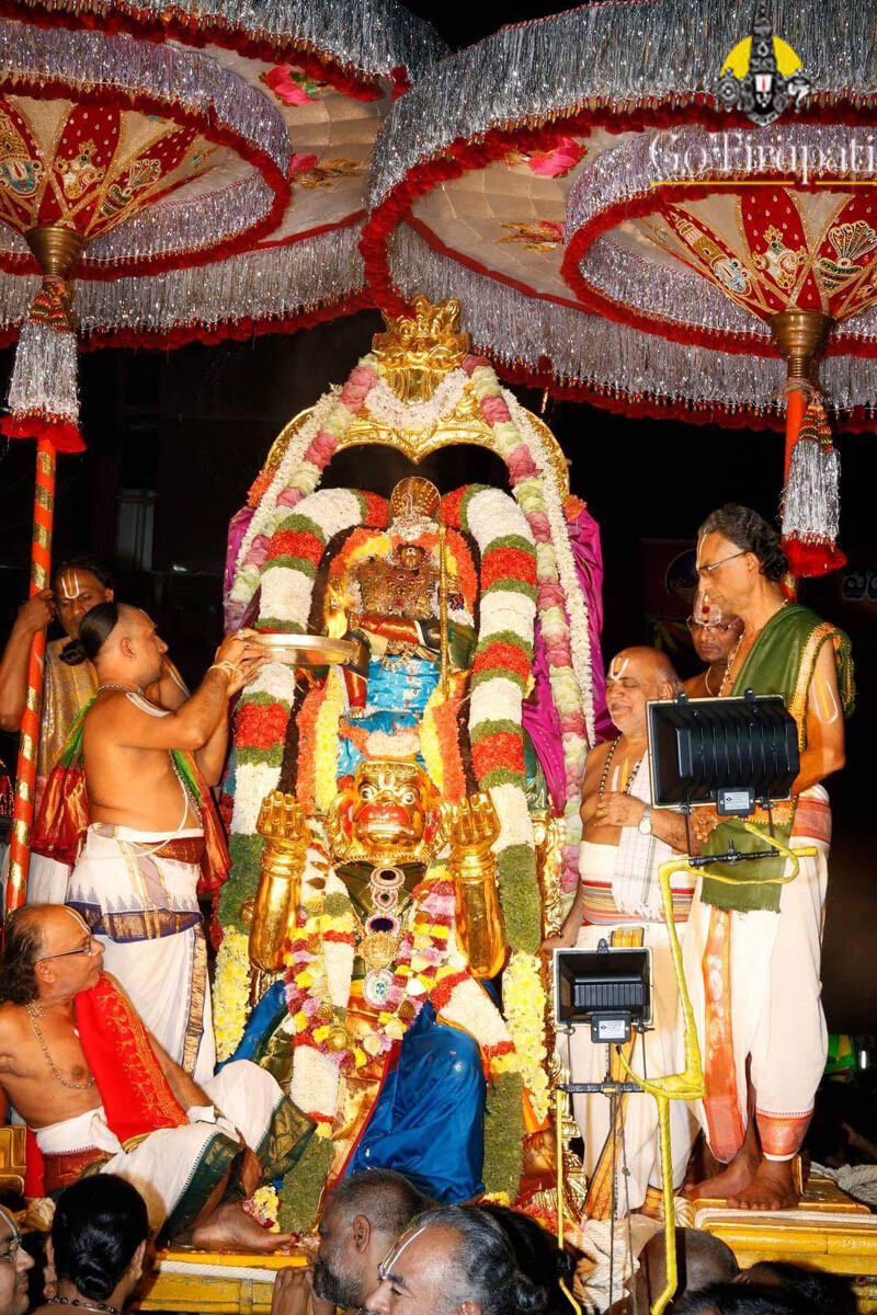 As a part of the ongoing annual Karthika Brahmotsavams, on the serene evening of Friday, Goddess Sri Padmavathi Devi dressed up as Lord Sri Rama with bow and arrow in Her hand, mounted on the mighty Hanumantha Vahana blessed Her devotees at Tiruchanoor.