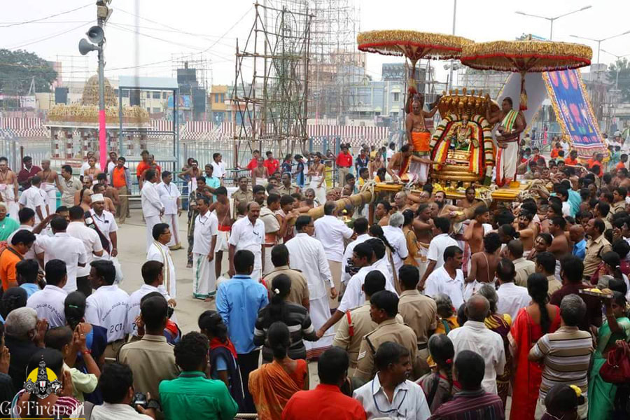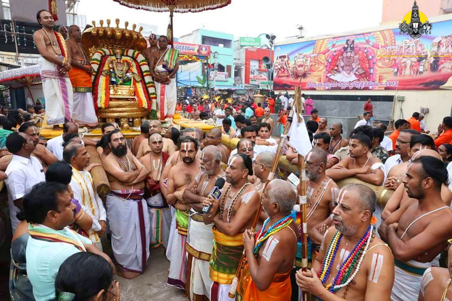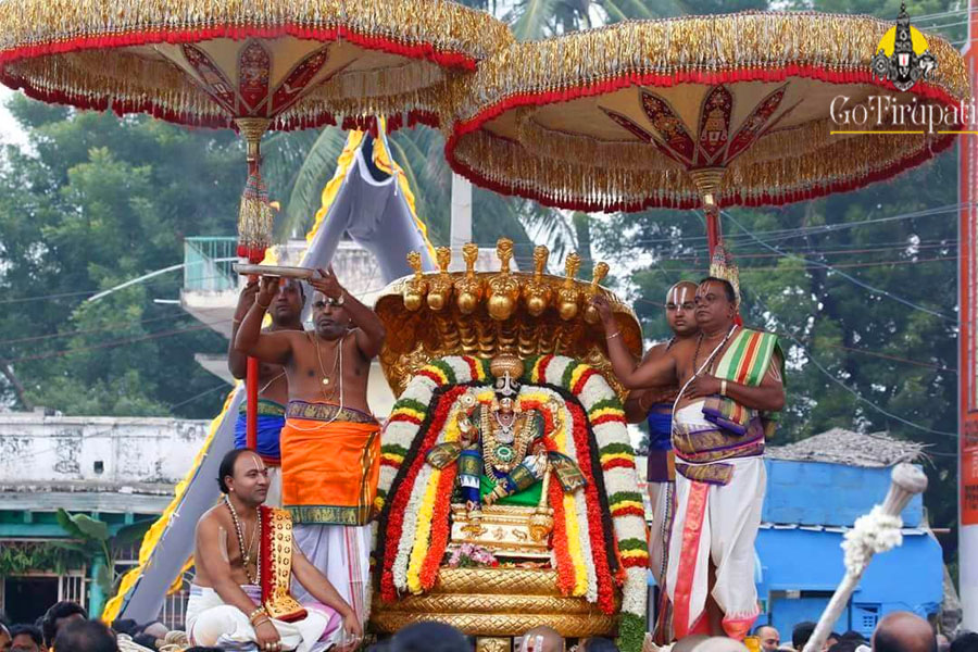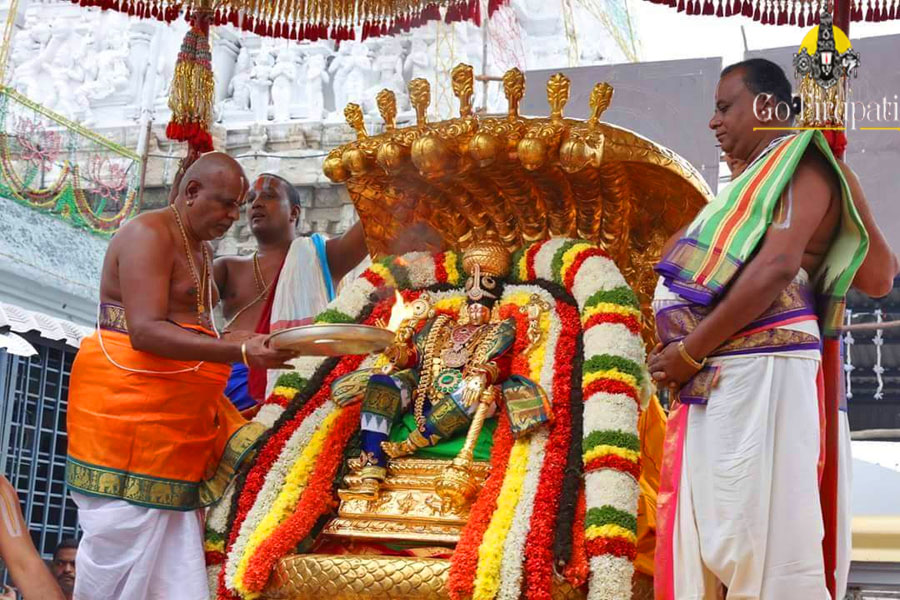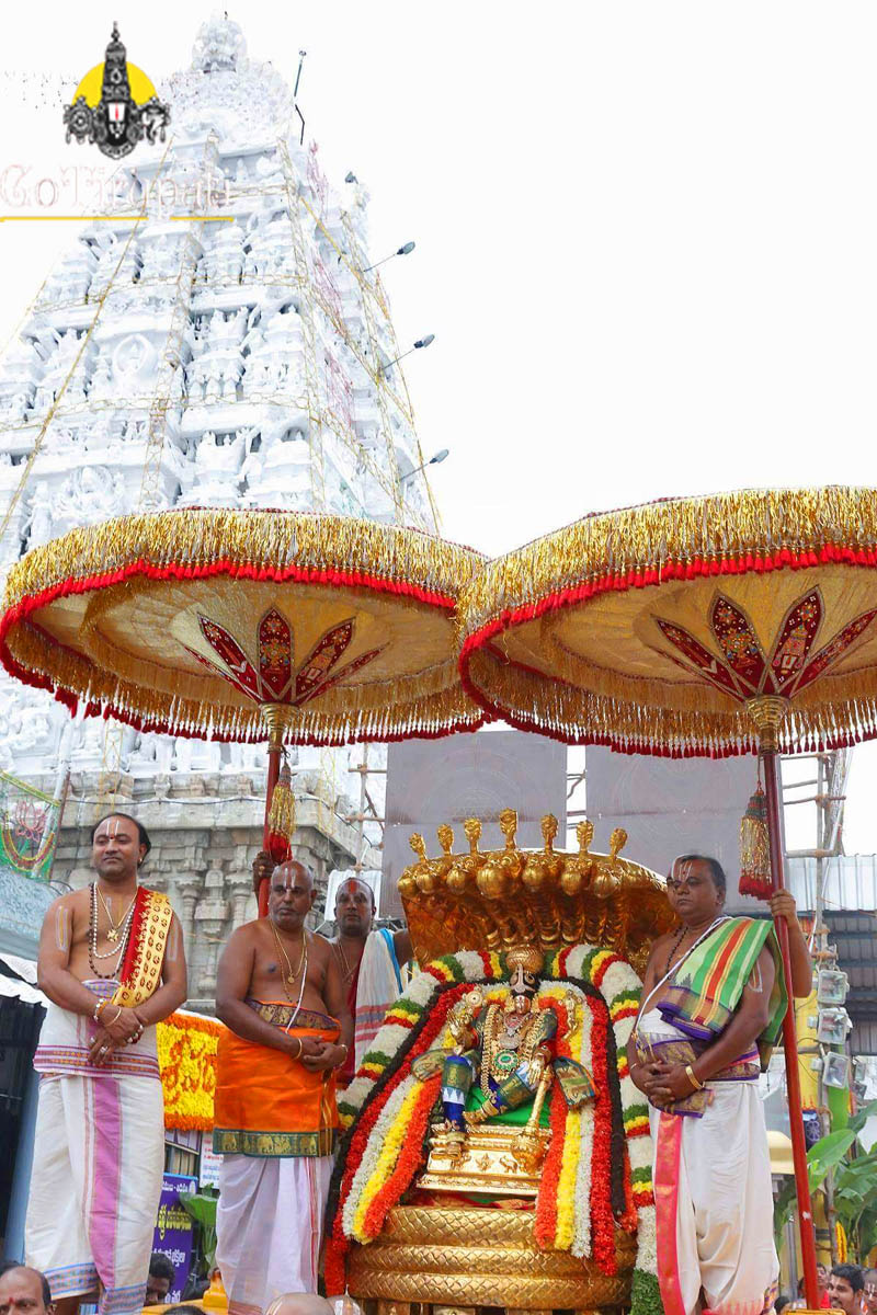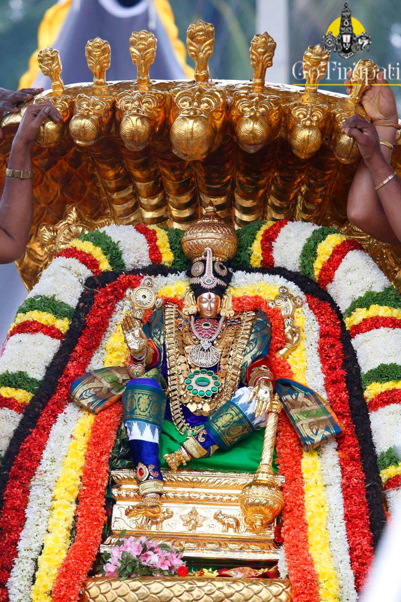 Adisesha-considered to be one of the ardent servants of Lord Sri Maha Vishnu serves him in various ways as pillow, bed, ornament, umbrella etc. and reveals his “Saranagati Prapatti” which is the chief character of a noble servant. As a mark of his ardent service, the Lord has given him priorityh during the vahanam processions. The procession took place around the four mada streets from 8am to 10am.
