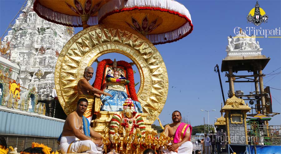 The procession of Lord Venkateswara on the seventh day of Srivari Navaratri Brahmotsavam atop the Suryaprabha Vahanam was an enthralling experience for the devotees.