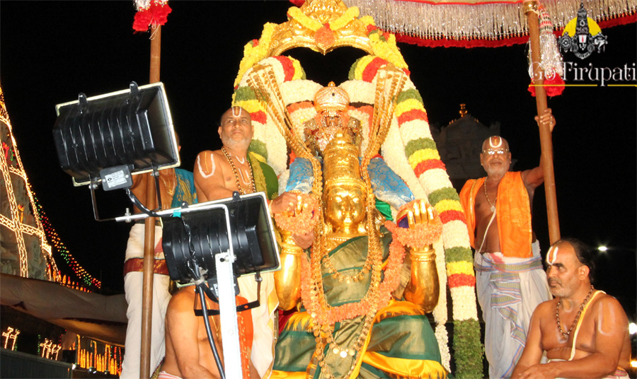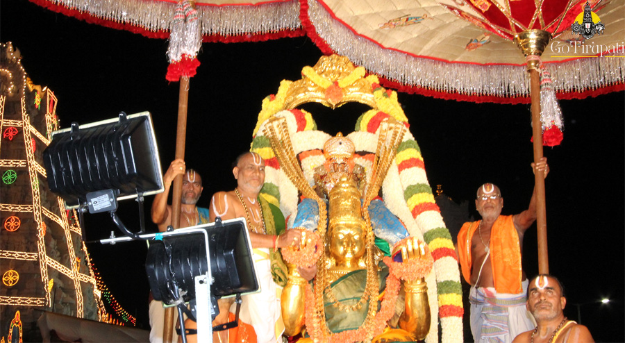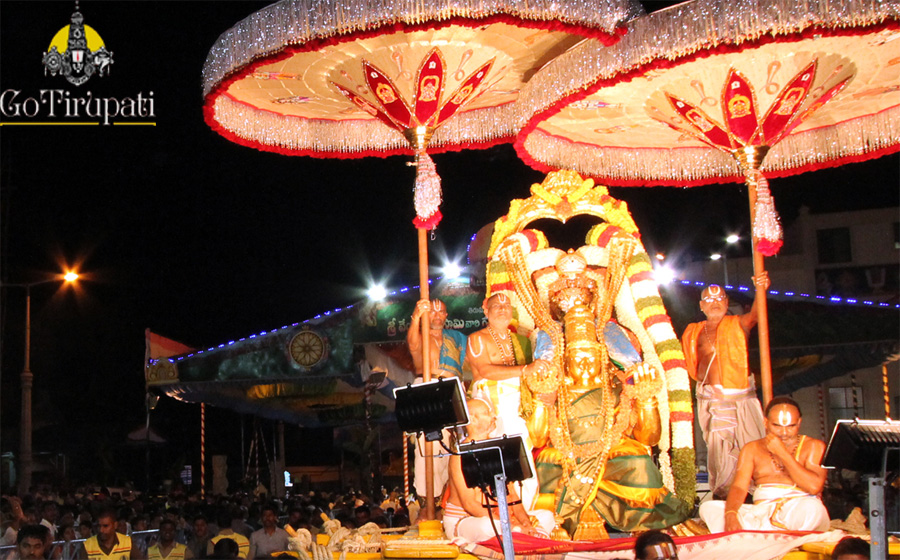 The procession of Lord Malayappa Swamy on His favourite vehicle Garuda Vahanam usually takes place on the fifth day of annual brahmotsavams and during every month full moon day. Apart from this the procession will also be conducted on Garuda Panchami day.