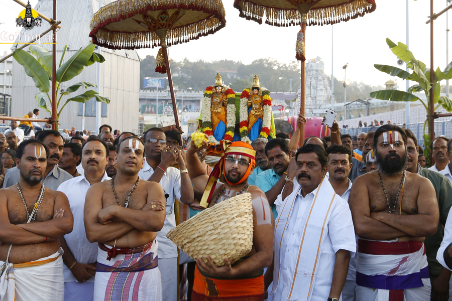 Union Minister of State for Surface Transport Sri P Radhakrishna, TTD EO Sri Dr D Samba Siva Rao, Temple DyEO Sri Chinnamgari Ramana and other temple officials were also present.
