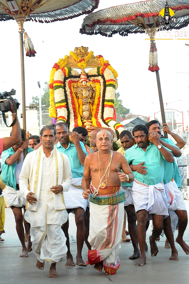 As part of the festival, TTD authorities had dispensed with the conduct of Vasanthotsavam on Tuesday evening.