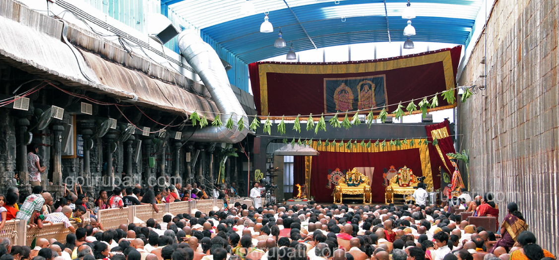 For us, it is the Lord’s saulabhya that we get the immense pleasure to be His parents when we perform the Kalyana utsavam. It is like the bhaagya that Yashoda enjoyed in being the Lord’s own mother in Krishna avatara. In the Srinivasa Kalyana Mahatmyam, it is said that Yashoda wanted to witness the Lord’s wedding, an opportunity she never had in Krishna Avatara. In effect, she engineered Lord Srinivasa’s wedding to Padmavati and had the opportunity to witness this blissful event. Such is the pleasure of performing or witnessing the Kalyana Utsavam.