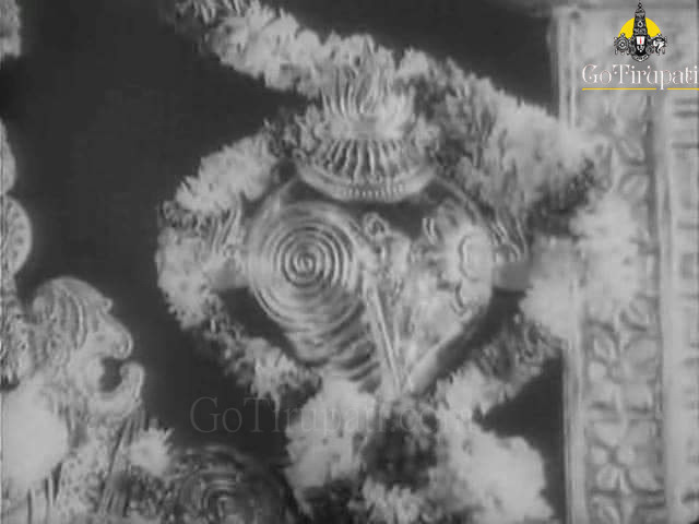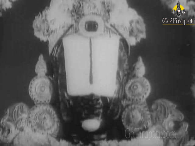 Lord Venkateswara of Tirumala appears with a broad, white ‘karpoora namam‘ (Camphor Symbol on the forehead). During the darshan after ‘Pulangi Seva‘ on Thursdays the size of namam is reduced considerably, and during the Friday morning ‘abhisheka seva‘ (Sacred bath), the Lord appears without the namam. Devotees then have what is called ‘ Netra Darshanam ‘ and ‘ nija pada darshanam ‘ ( Opportunity to see the eyes and the feet of the Lord.