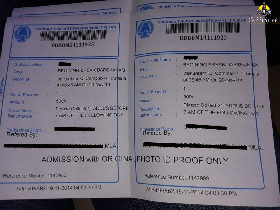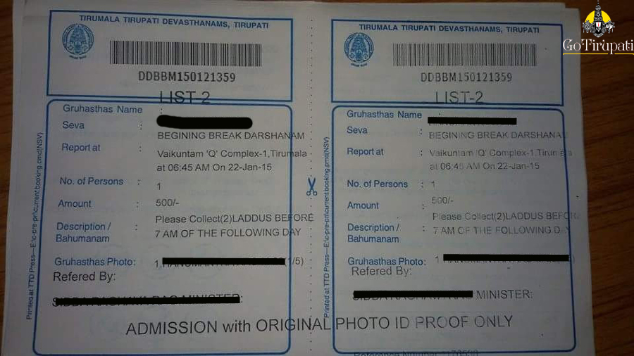 Please SHARE Tirumala Tirupati VIP Break Darshan Ticket Info online.