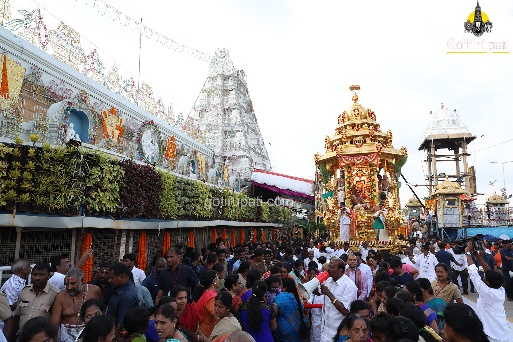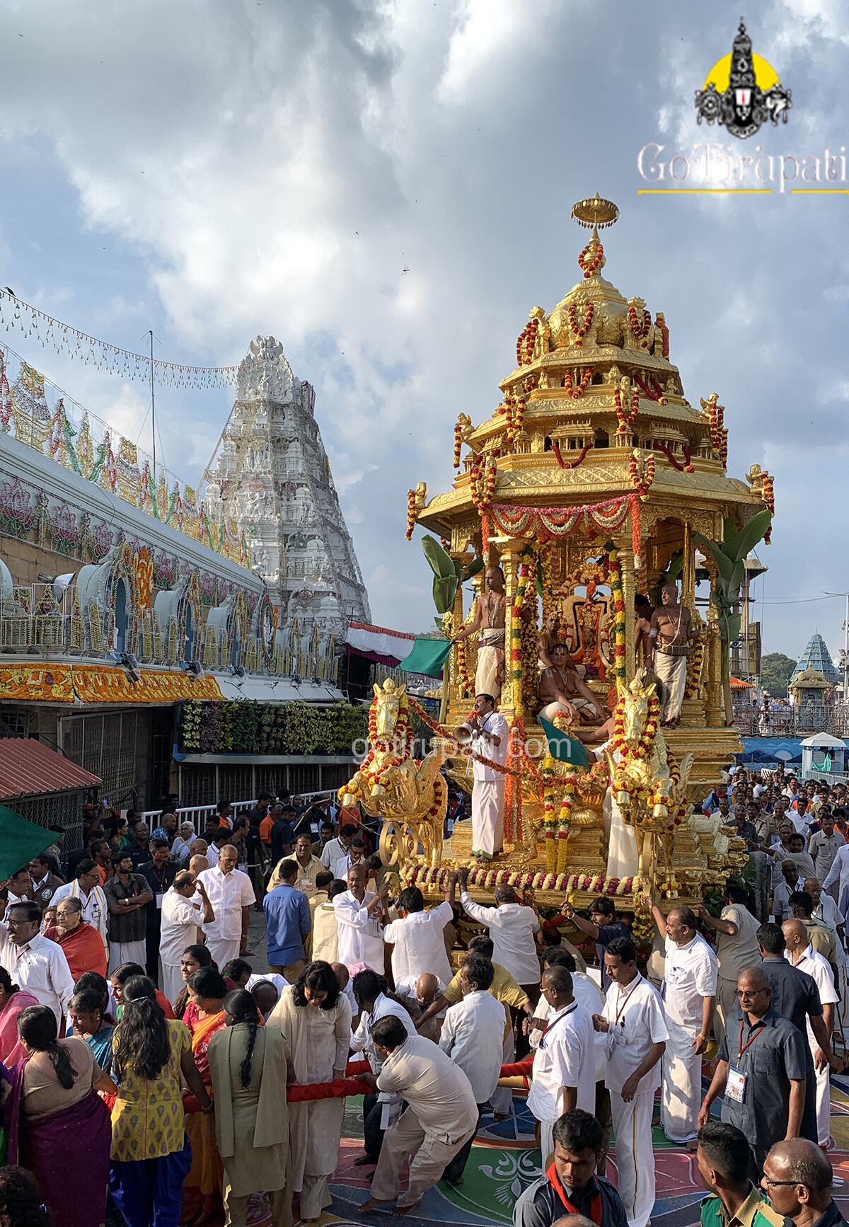 Meanwhile, Lord traversed through the four mada streets seated majestically on the golden “Devasana Peetham” on the 30-feet mighty golden chariot.