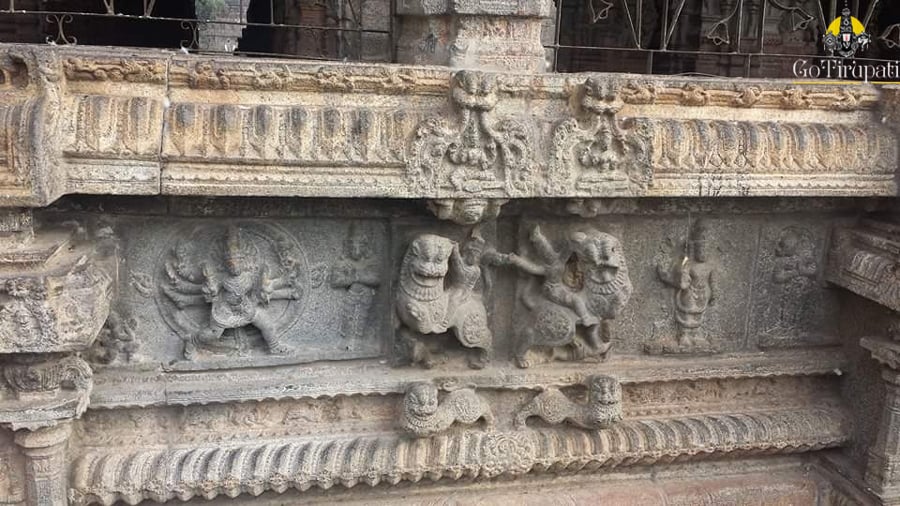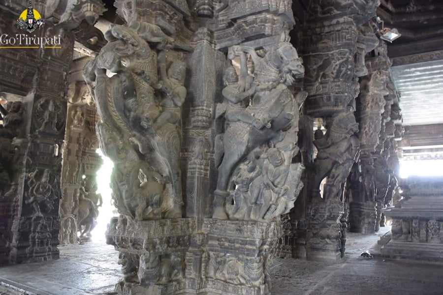 The 100-pillared mandap, which comes on the left after passing Raja Gopuram, is eye-catching with beautiful sculptures.