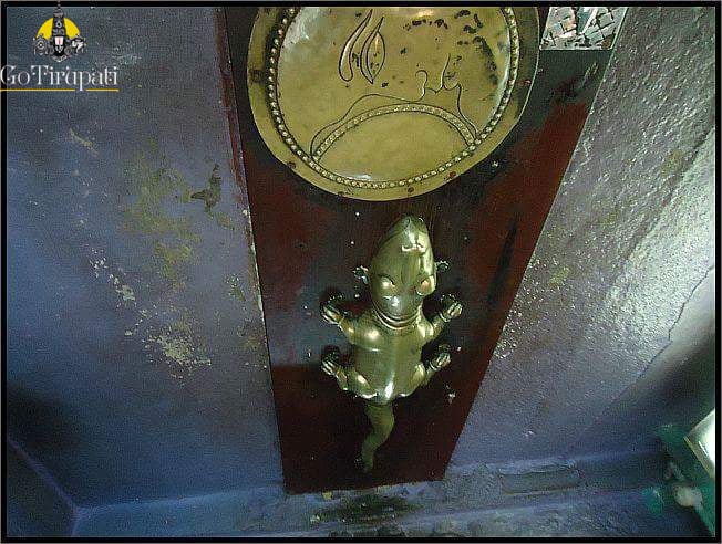 Two disciples traveled to Kanchipuram and stayed there for a considerable amount of time as lizards on the Sage’s advice. Disciples were relieved of their curse after praying to Lord Varadaraja. Disciples attained salvation but their mortal coil remained here. It is believed that whoever prays to Lord Varadaja and touches these two lizards on their way out will be relieved of all chronic diseases.