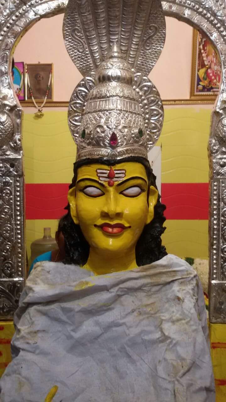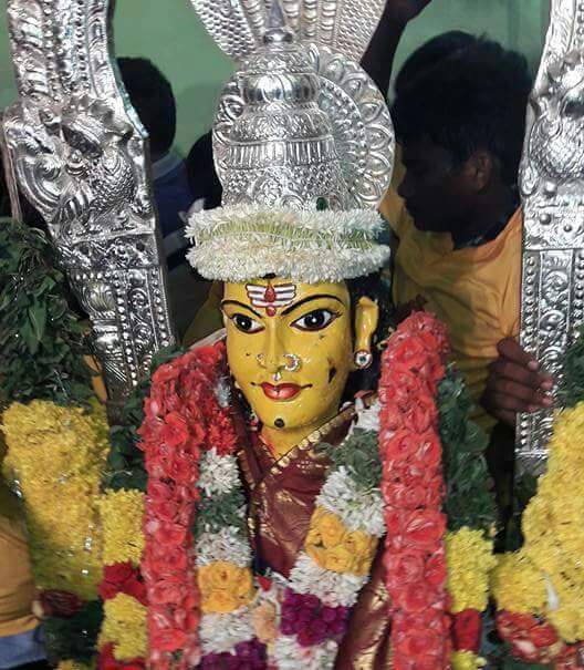 On Ghatotsavam day, Kummari community who lives at Venkatagiri Kummari Street prepares the Idol of Poleramma with Clay. Eyes will not be placed to the deity. This Idol will be taken out in a procession from Puttinill (Kummari street) to Mettinillu (In-law’s Home at Jeenigala Vari street), Chakali House. Eyes will be placed after reaching in-laws house. The deity will be kept outside in the street for two days, during this time devotees offer special poojas to the deity. After two days, the deity will go around the streets of the Vekatagiri followed by Nimarjan. Nimarjanam will be performed at a specially reserved place at Kaivalya river bed.